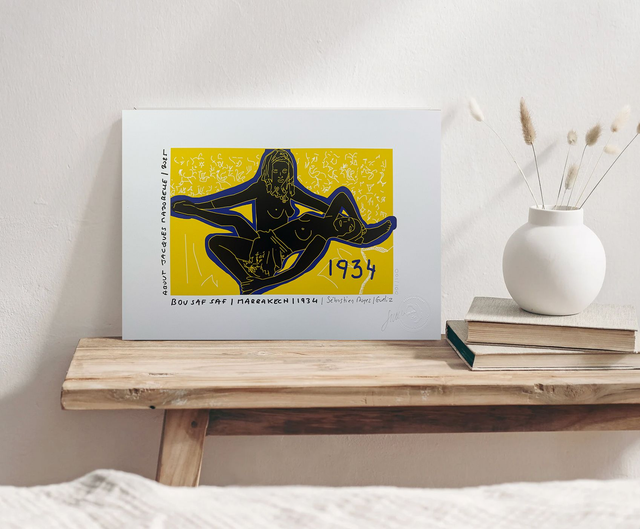 Série limitée à 100 exemplaires : " About Jacques Majorelle" (artiste peintre 1886-1962). Impression jet d'encres couleurs sur papier 280 gr format A2 (42x59,4cm). Signées par l'artiste. Hommage à l'artiste peintre et son univers, d'aprés des peintures réalisées par l'artiste à Marrakech. Livraison sans cadre