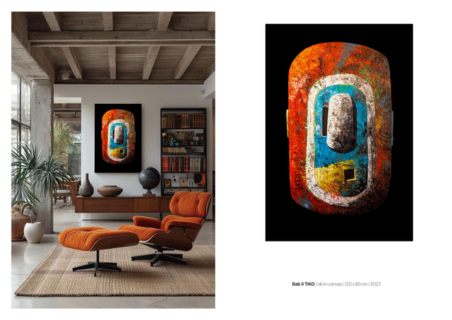 Peinture à l'huile et acrylique sur toile, format 120x80 cm