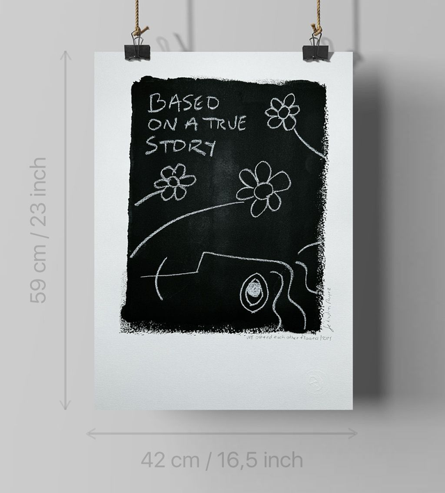 Acrylique et pastel sur papier 350 gr, originale signée par l'artiste, format A2 42x59 cm , cette peinture fait partie d'une série intitulée : "based on a true story", cette acrylique est extraite de mes recherches préparatoires pour la réalisation de tableaux. Sans encadrement.