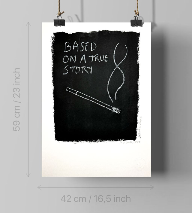 Acrylique et pastel sur papier 350 gr, originale signée par l'artiste, format A2 42x59 cm , cette peinture fait partie d'une série intitulée : "based on a true story", cette acrylique est extraite de mes recherches préparatoires pour la réalisation de tableaux. Sans encadrement.